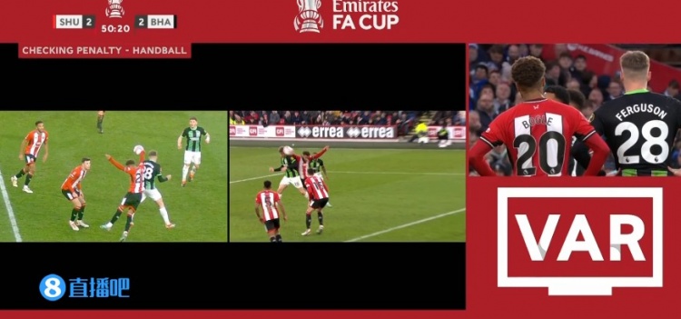 第50分钟,布莱顿右路传中,博格争顶时手球,主裁判经VAR确认后判罚点球。↓