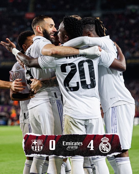 国王杯-本泽马3射1传维尼修斯传射 皇马4-0巴萨总比分4-1进决赛