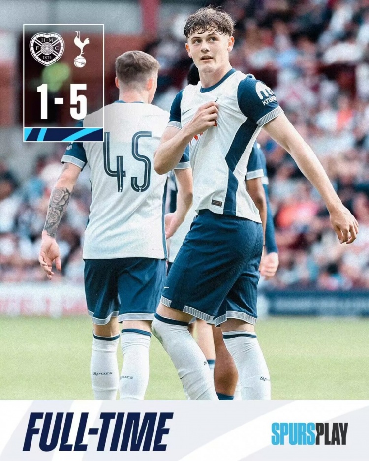 7月18日讯 足球友谊赛,热刺对阵哈茨。上半场,麦迪逊助攻约翰逊破门。易边再战,香克兰德闪击扳平,兰克希尔、摩尔、斯宾塞连进三球,最后时刻热刺造乌龙。最终,热刺5-1战胜哈茨。