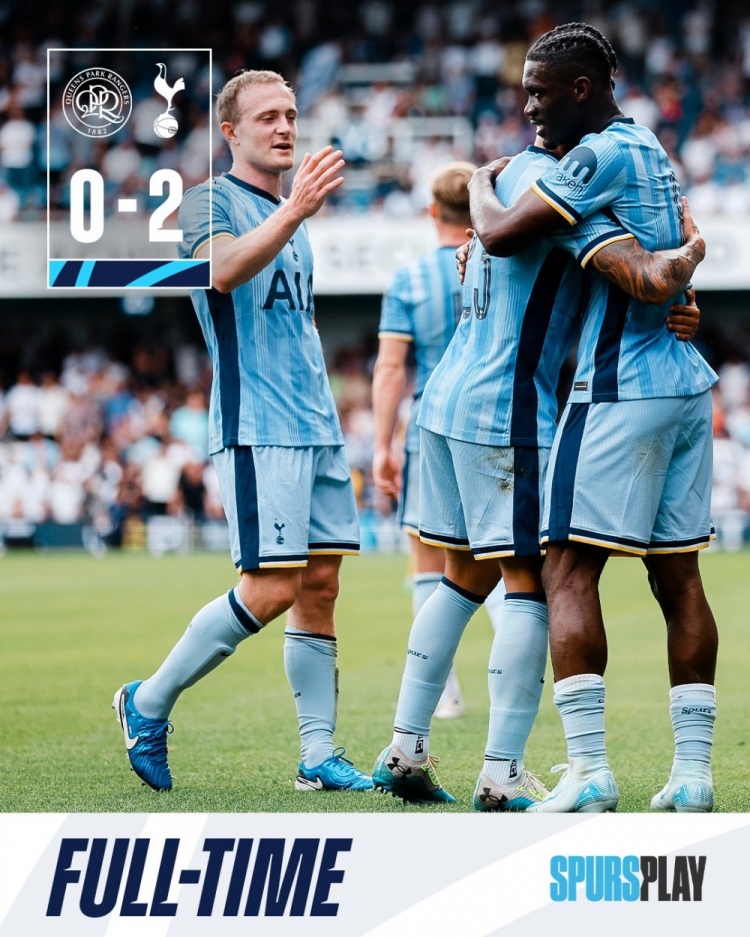 全场比赛结束,热刺2-0女王公园巡游者。