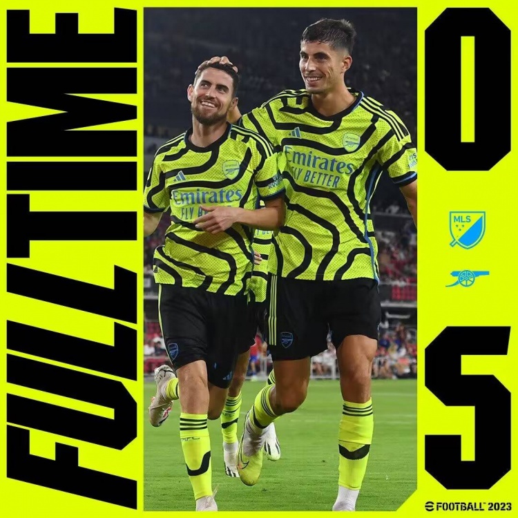 季前赛-阿森纳5-0MLS 哈弗茨凌空迎首球赖斯首秀热苏斯破门