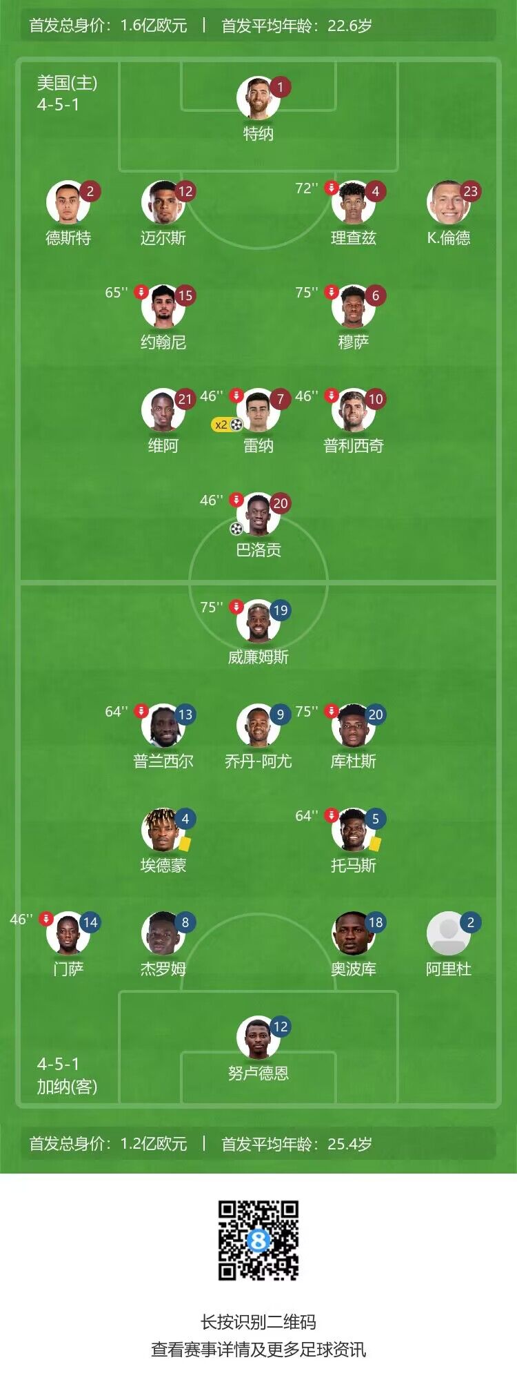 友谊赛-美国4-0大胜加纳,雷纳双响,普利西奇&巴洛贡建功